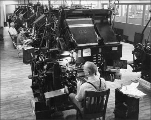 These rather ferocious but friendly contrivances were linotype machines. They and others of their klan would nearly disappear from the printing scene over the coming decades.